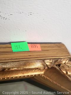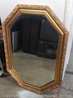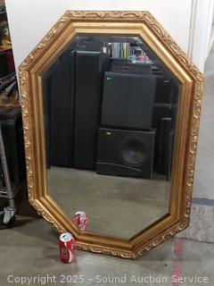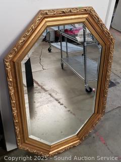 Lot #0351: Oval Octagon Gold Framed Beveled Mirror
