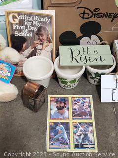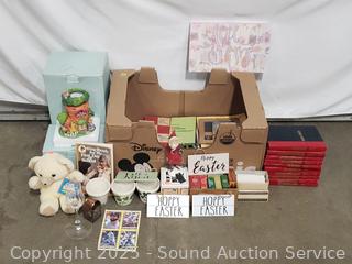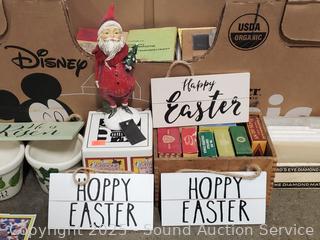 Partylite 5pc quintet, Partylite bunny tealight house, planter pots, novels, chalk, insect erasers, etc.