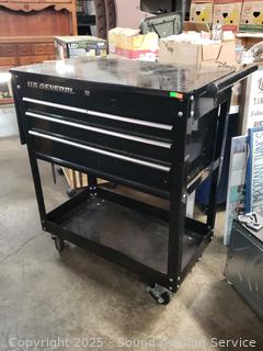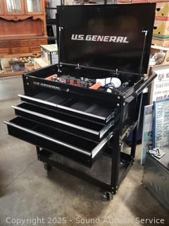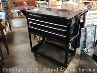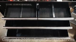 Lot #0021: US General Black Steel Rolling Tool Chest w/Socket Tray & Some Sockets