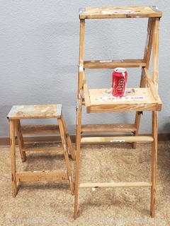Lot #0222: 2ft & 4ft Wood Step Ladders