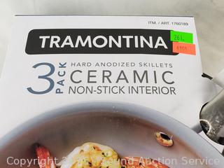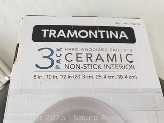 Lot #0261: 3pk Tramontina Hard Anodized Ceramic Non-Stick Skillets
