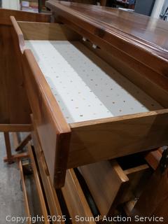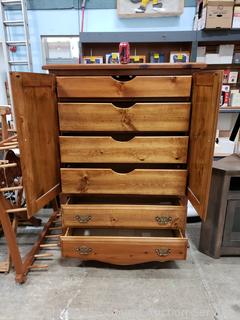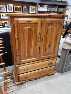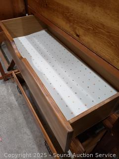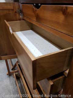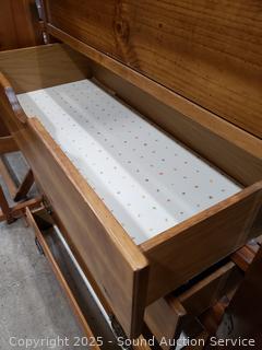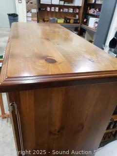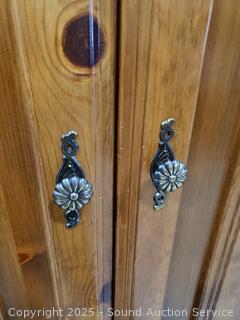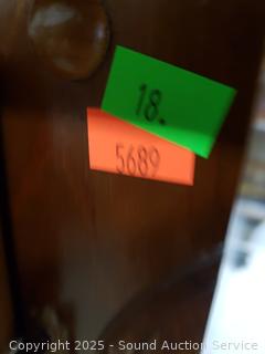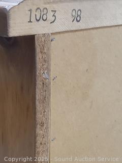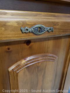 Wood Fronts, particle board construction, veneer finish. Some scuffs, scratches. 58" H x 42" W x 18" D.