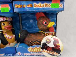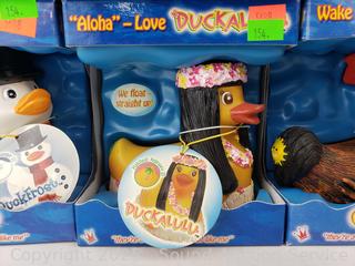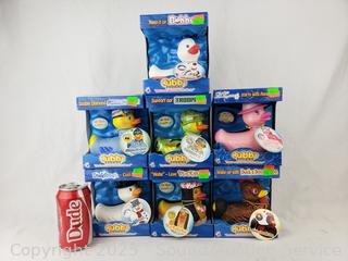Duckalulu, Duck Frost, Duck Slope, Duck A Doodle Doo, Bobber, Trooper, D. Cure. All in original packaging.