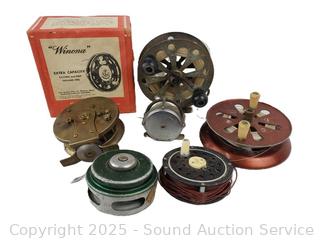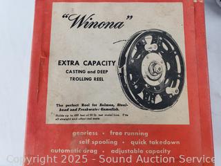 Winona Reel w/Original box, in excellent condition. Pflueger Captain reel, Shakespeare Automatic No.1821, Keen Kaster No.6, Olympic Reel No.500, Olympic Reel 60A, other.