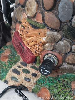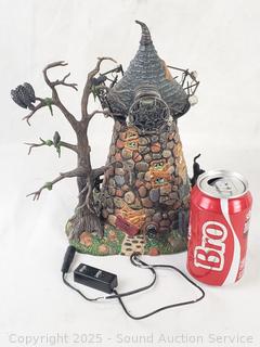 Features working windmill & Halloween sounds. Skull lights up, motion & sound work. Could not get the inside light to light up (tried replacing bulb), otherwise don't see any issues.