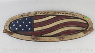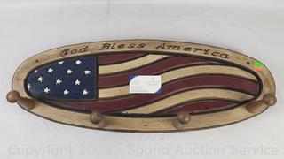 Lot #0115: God Bless America Carved Wood w/4 Hooks