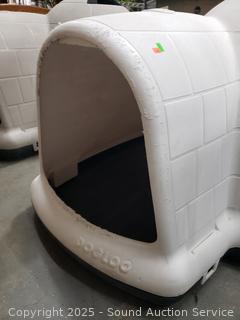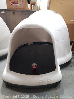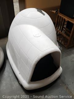 Signs of wear use, edge of door has been chewed on. 28" H x 48" x 36".