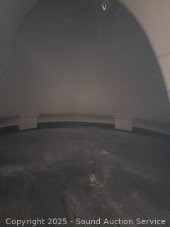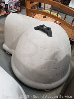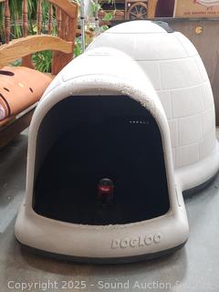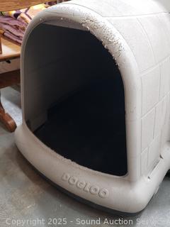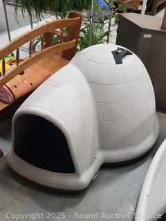 Signs of wear use, edge of door has been chewed on. 28" H x 48" x 36".