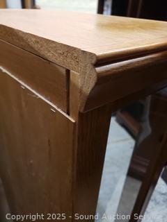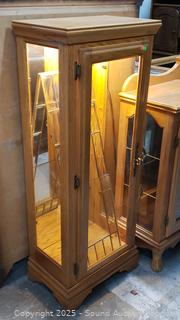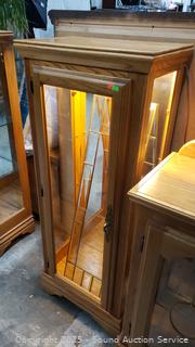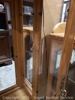 Lot #0012: Oak Lighted Mirrored Curio Cabinet