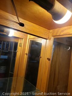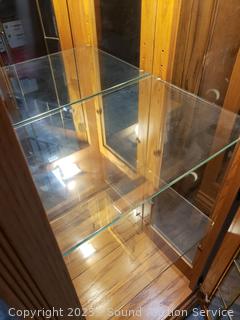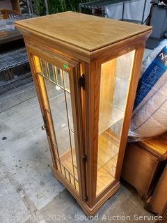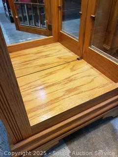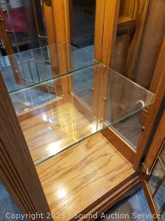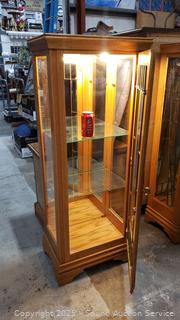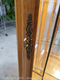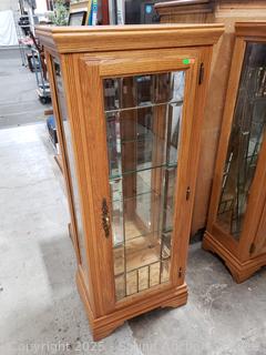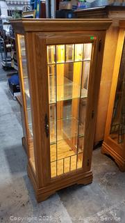 Lot #0013: Oak Lighted Mirrored Curio Cabinet