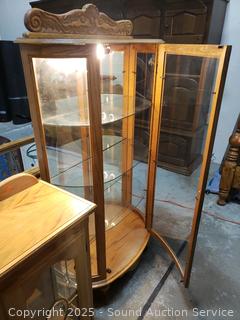 Lot #0010: Oak Mirrored 3-Shelf Glass Bookcase