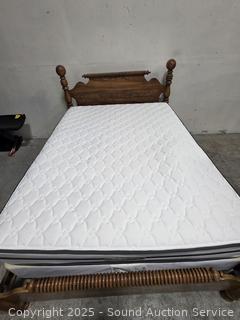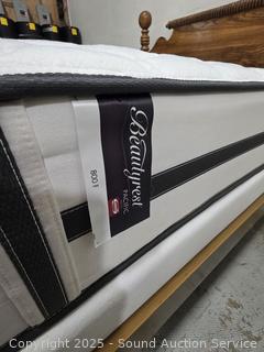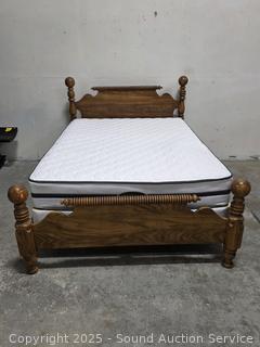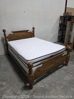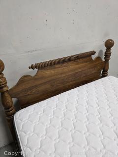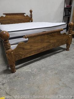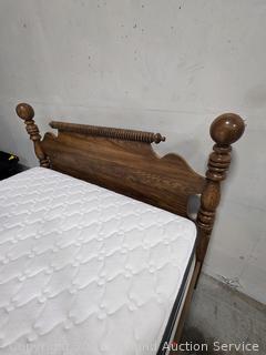 Lot #0005: Oak Spool Style Queen Bed Frame w/Beautyrest Mattress