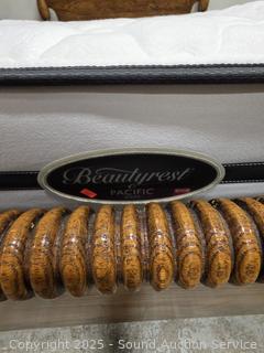Beautyrest Pacific series queen mattress. 29" to 49" H x 64" W headboard/footboard. 90" length siderails. Some minor scuffs, wear to finish, don't see any issues with mattress.