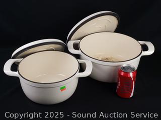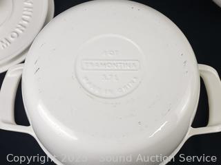 Lot #0277: Tramontina Ivory Cast Iron 4qt & 5qt Dutch Ovens