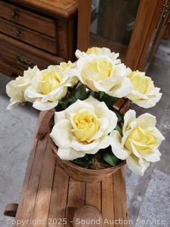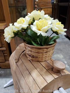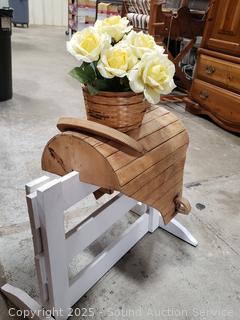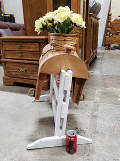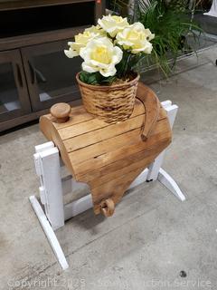 Lot #0007: Unique Wood Saddle Plantstand w/Faux Roses