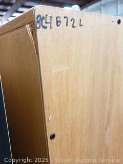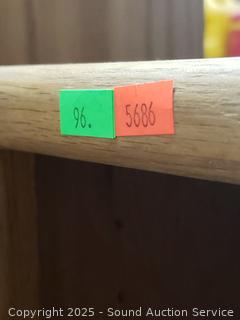 Appears to be all wood construction. Adjustable shelves. 72.25" H x 48" W x 12.25" D.