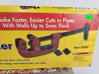 Has power, appears to be functioning as intended. Pipe cutter cuts up to 3-3/4".