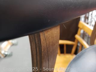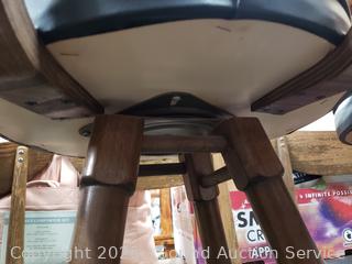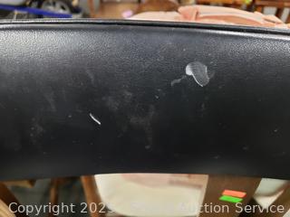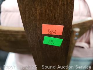 39.5" x 19" diameter at base. Some wear to finish, one backrest has a small hole.