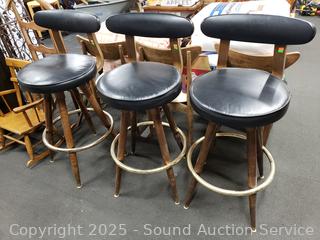 Lot #0068: 3 MCM Vinyl Seat Swivel Bar Stools