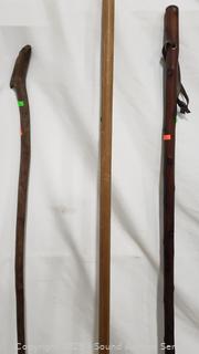 Comes with note from consignor with details about each stick. 48", 51" and 60" long.