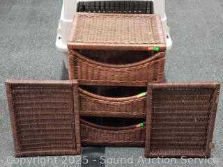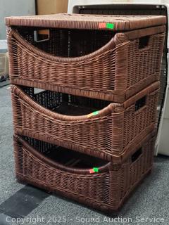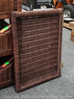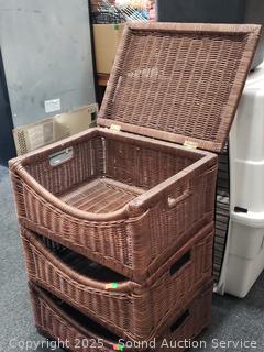 All have lids, 2 lids are not connected to the baskets. All approx. 9" x 17" x 13".