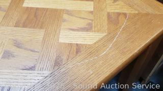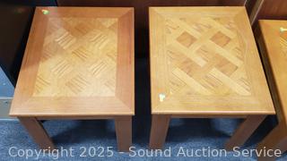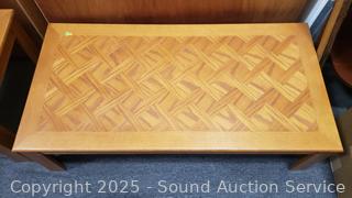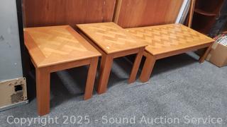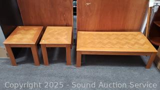 Lot #0013: 3pc Tessellated oak Living Room Table Set