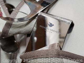 Lot #0230: 4 Micheal Graves Hanging Tote Organizers, 2 Hanging Hook Straps