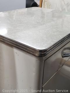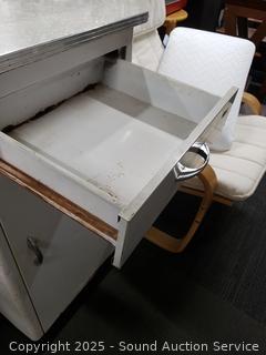 Lot #0041: White Steel Single Drawer Cabinet w/Laminate Top