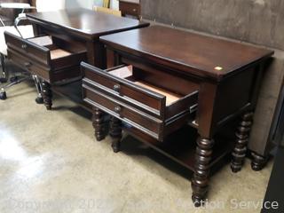 Lot #0004: 2 Ashley Furniture Cherry 2-Tier Single Drawer Nightstands