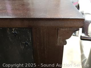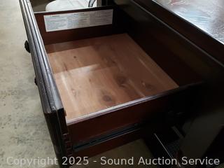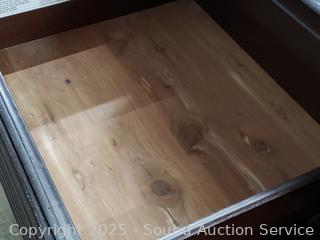 In great condition, don't see any major issues. Appear to be all wood construction or wood fronts. Ball bearing drawer guides. Cedar lined drawers. Matches the previous few lots. 29.75" H x 30" W x 19" D.
