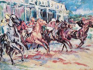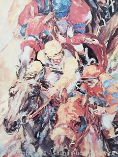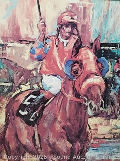 "In the Stretch", "They're Off", "The First Turn", "At the Wire", "Victory". 18" x 24.75". Framed with glass.