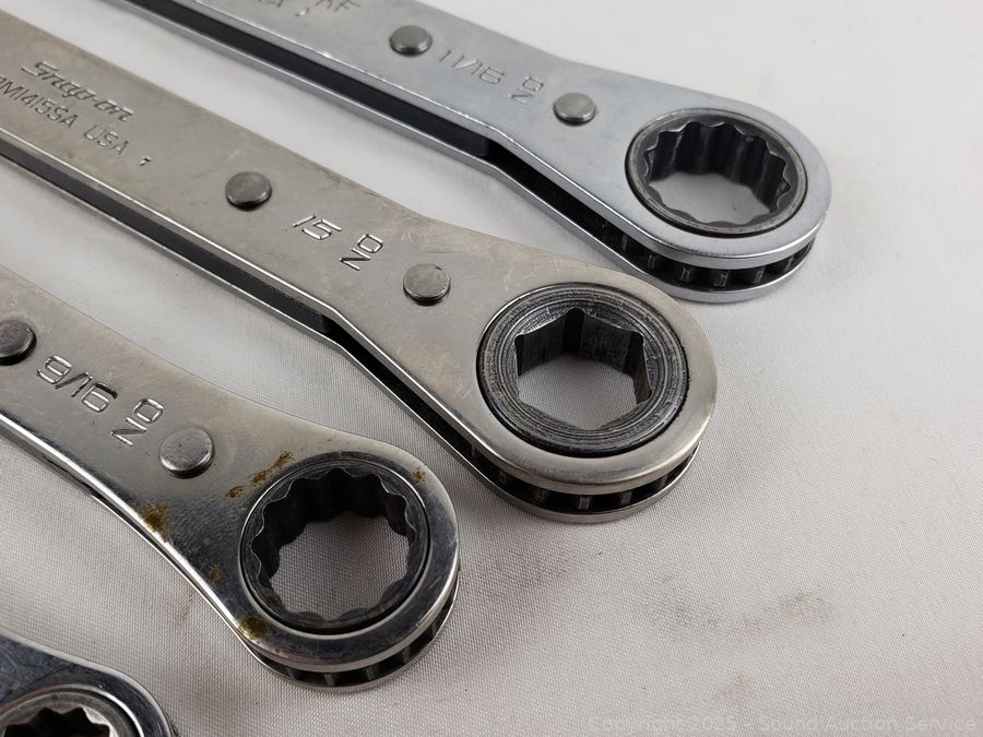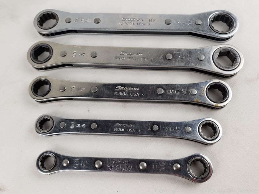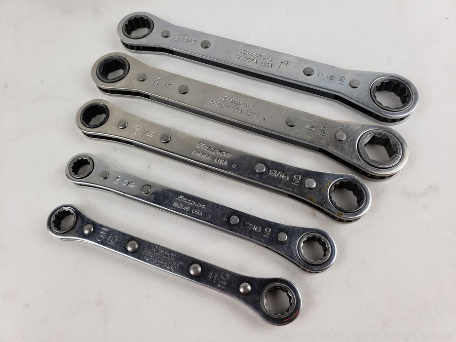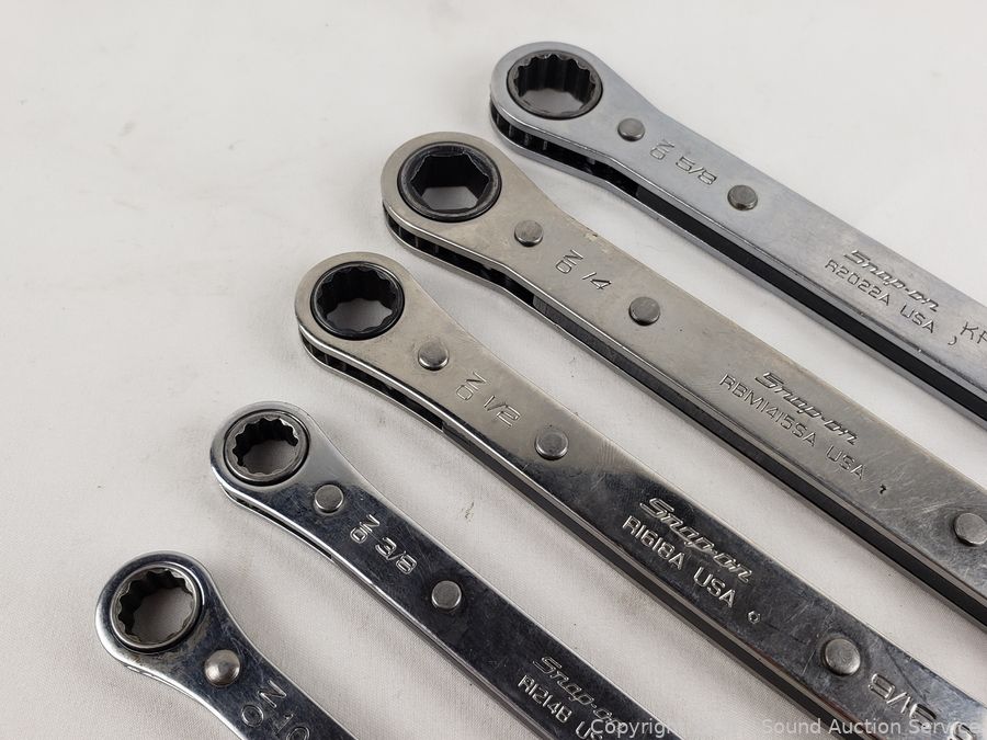 Lot #0149: 5 Snap-On Ratcheting Wrenches SAE & MM