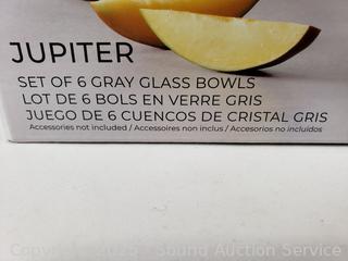 Lot #0317: 6pc Fortessa Jupiter Gray 5" Glass Bowls
