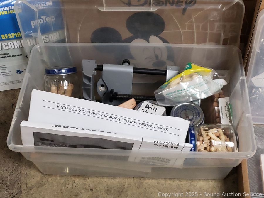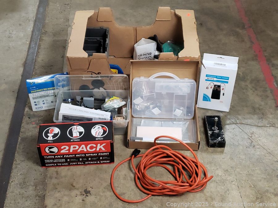 Craftsman Dowel Pro Kit, Plastic Welder Kit, Turn any paint into spray paint kit, organizer bins, underground wire locator kit, coveralls, gloves, extension cords, etc. Refer to photos for lot contents, more details.