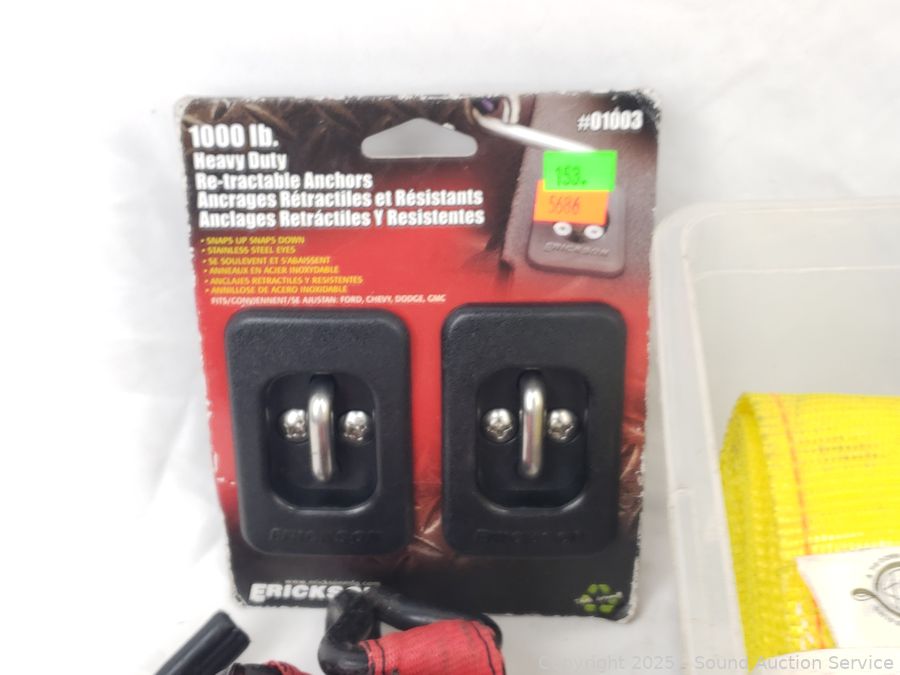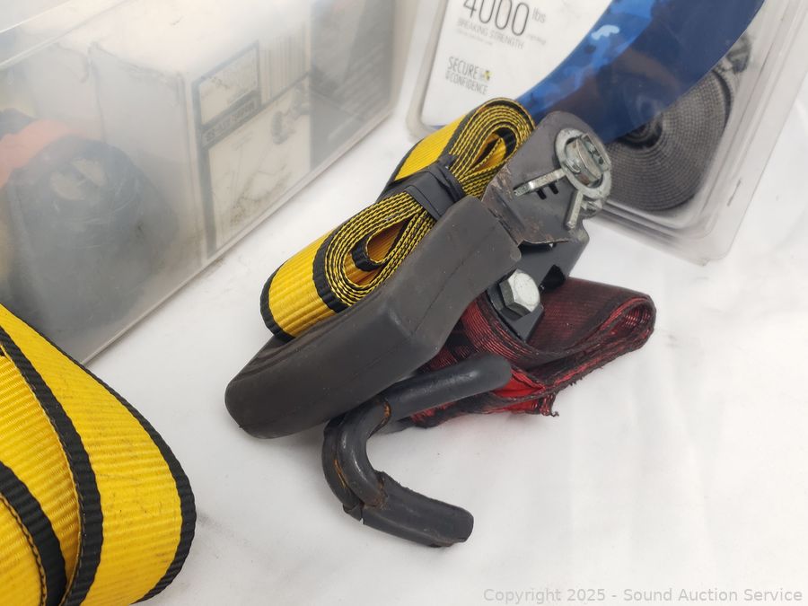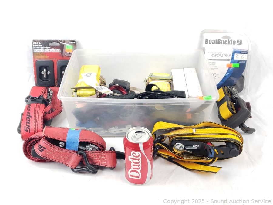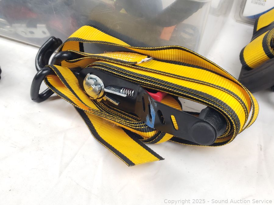 Lot #0153: Assorted Ratchet Strap Tie-Downs, Winch Strap, Anchors