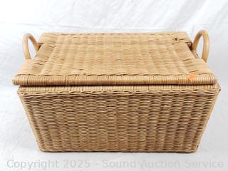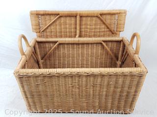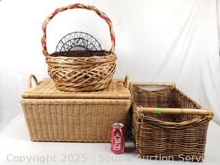 Lot #0136: Hanging 3-Tier Basket & 3 Wicker Woven Baskets