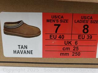 Lot #0195: Kirkland Unisex Shearling Tan Slippers S:M7/W8