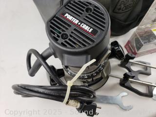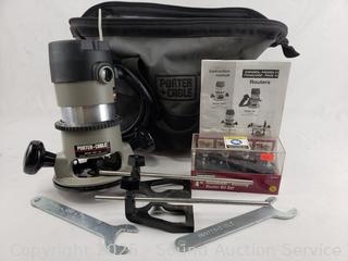 Lot #0206: Porter Cable Router w/Bag & 4pc Bit Set & Manual