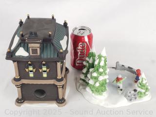 "Skating Pond" & "Blenham Street Bank" of the Dicken's Village series. Don't see any issues. Comes with original boxes.