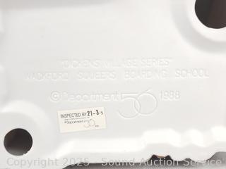 Oliver Twist "Brownlow House" & Nicholas Nickelby "Wackford Squeers Boarding Schools" of the Dicken's Village series. Don't see any issues. Comes with original boxes.
