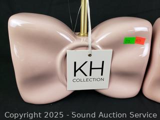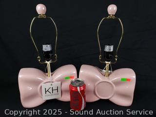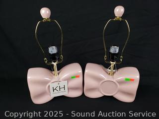 Lot #0213: 2 Pink Bowtie Ceramic 16" Table Lamps