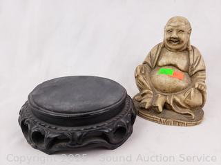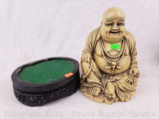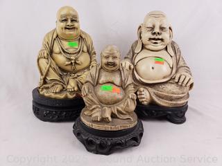 Lot #0174: 3 Composite Resin Buddha Sculptures w/Stand