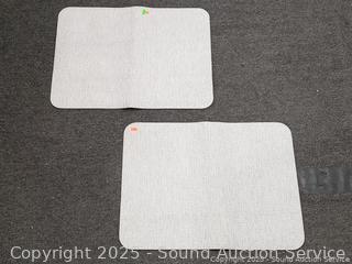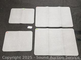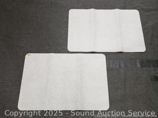 (2) 20" x 15", (2) 30" x 20". Don't see any issues. Great for dish drying mats, pet spill mats, bathroom catchall.