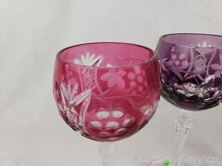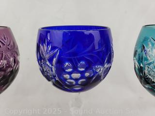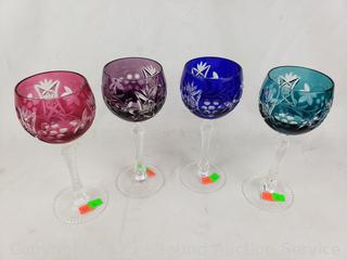 Lot #0070: 4pc Colorful Cut Crystal Stemware