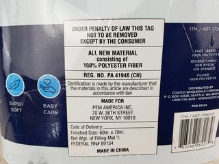 60" x 70". Has a couple small dirty spots, otherwise appears unused.