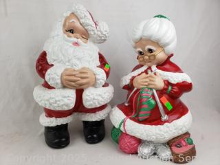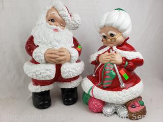 Lot #0194: Ceramic Hand Painted Mr. & Mrs. Claus Statuaries