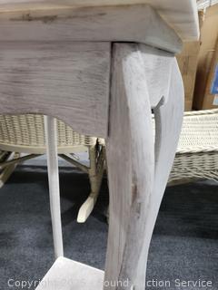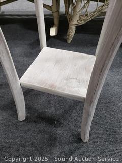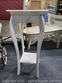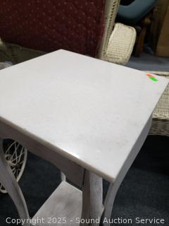 Lot #0018: Distressed White Finish Quartz Stone Top Accent Table