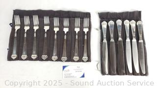 8 Forks TW: 326g = 11.5oz & 6 Knives TW: 346g = 12.2oz. Comes with silvercloths.