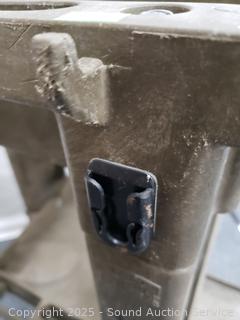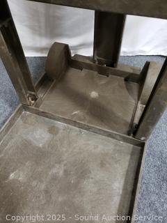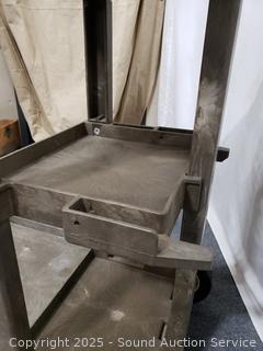 Various wear from use, missing pin for handle. Rolls great. 38" x 18.5" W x 34" length.