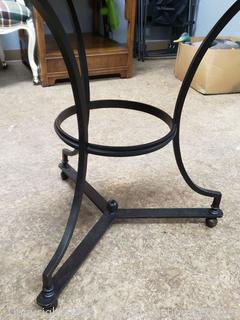 Lot #0317: Wrought Iron Base Medium Finish Wood Top Round Table